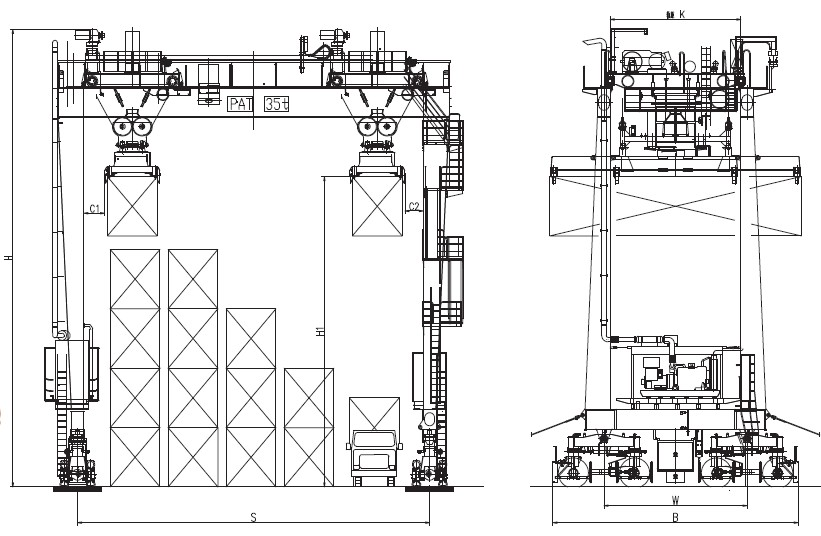 1、 輪胎式集裝箱門式起重機是集裝箱貨場進(jìn)行堆碼作業(yè)的專用機械,廣泛應(yīng)用于港口碼頭及集裝箱貨場。