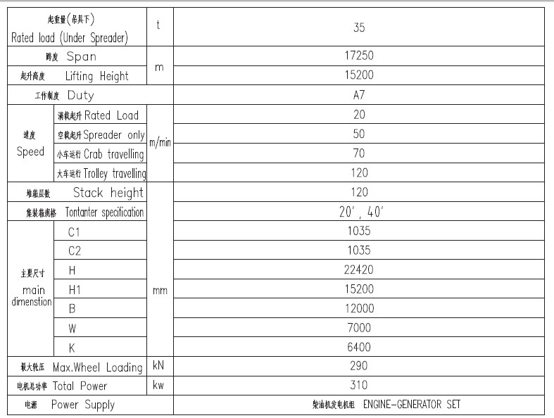 2、 采用專用集裝箱吊具,可起吊20、40、45標(biāo)準(zhǔn)集裝箱及液壓儲存罐。