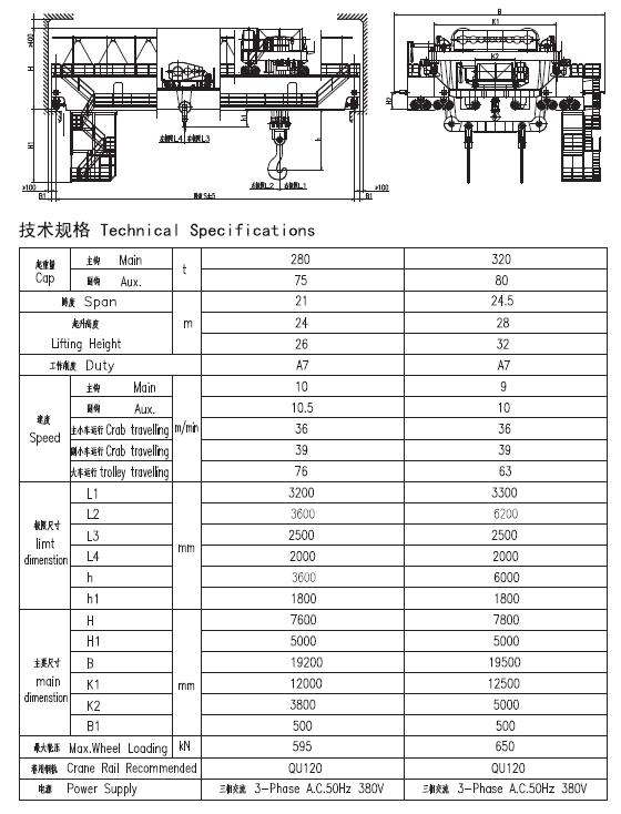 二、產(chǎn)品簡圖及技術(shù)規(guī)格(YZ280/75-320/80t)